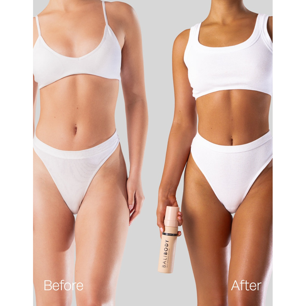 Нанесіть мус на чисту та суху шкіру тіла за допомогою спеціальної рукавички для автозасмаги Bali Body.