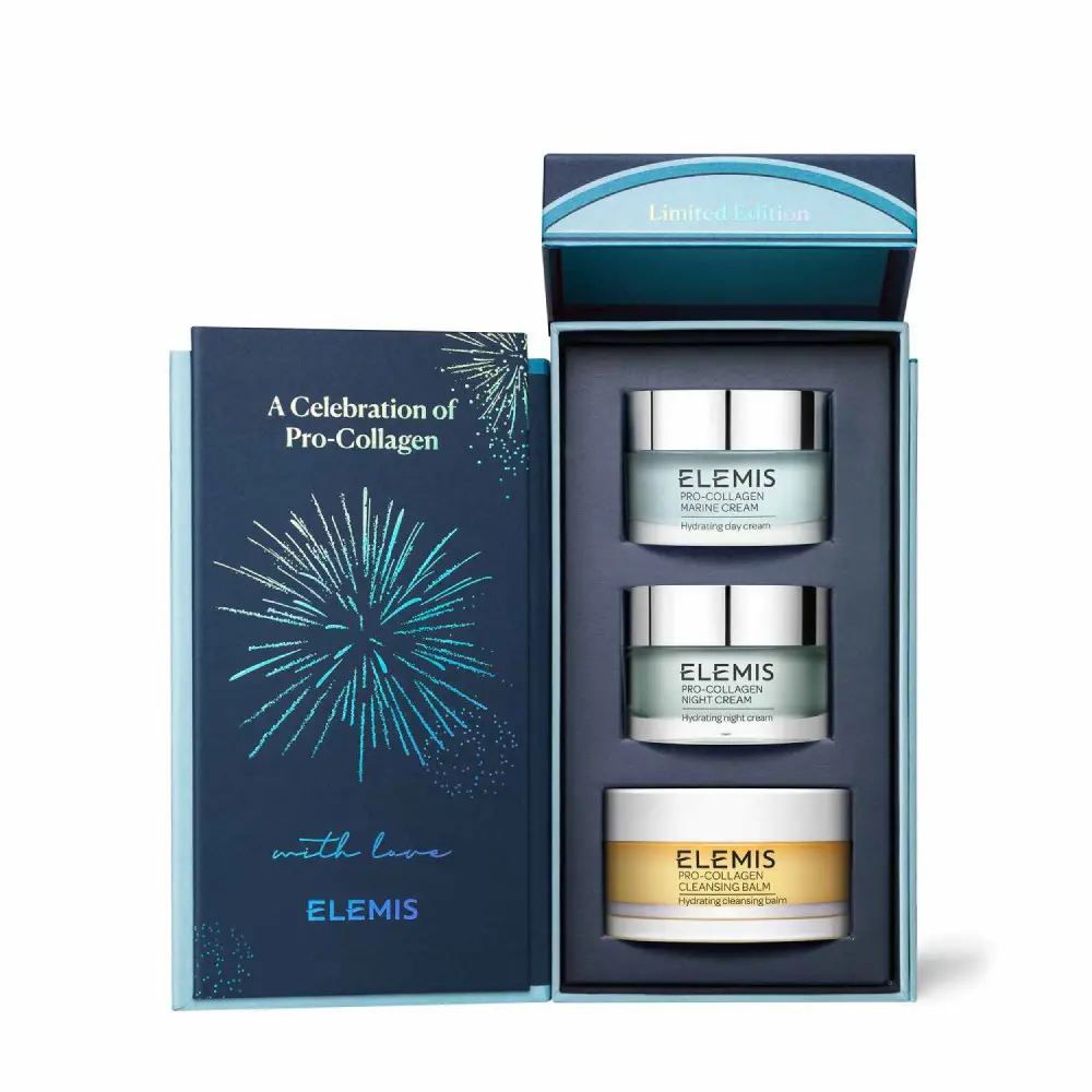 Набір ELEMIS Pro-Collagen Celebration Trio Collection створений на честь 20-річчя інновацій серії Pro-Collagen та поєднує три культові бестселери бренду для комплексного догляду за шкірою обличчя. Набір забезпечує повноцінний ритуал очищення, денного та нічного догляду, спрямований на зволоження, розгладження та підтримку пружності шкіри.