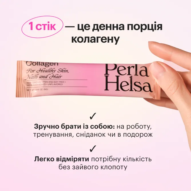 Perla Helsa Marine Collagen — це питний продукт на основі чистого морського гідролізованого колагену. Завдяки гідролізованій формі колаген легко використовується організмом та підходить для регулярного прийому. Нейтральний смак робить продукт універсальним у використанні — його можна вживати окремо або додавати до води, соку чи інших прохолодних напоїв без зміни їх смакових властивостей. Рідка текстура забезпечує зручність дозування та комфорт у щоденному застосуванні.