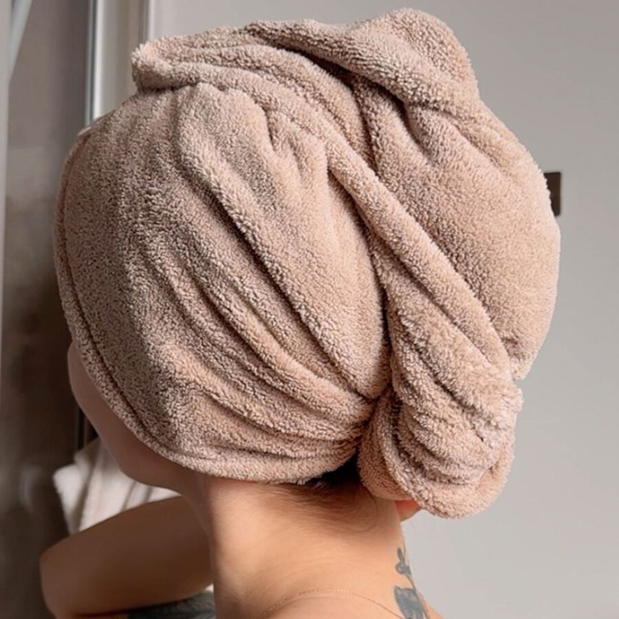 Рушник виготовлений із мікрофібри, вона швидко поглинає вологу, та сприяє дбайливому висиханню. Основний принцип збереження здоров’я волосся в тому, що він швидко та легко одягається, добре фіксується не потребує додаткового тертя. Потрібно просто огорнути, та зафіксувати петельку, коли волосся вже достатньо підсохне, мікрофібра поглинає більшу частину вологи, залишиться просто досушити його будь-яким зручним методом.