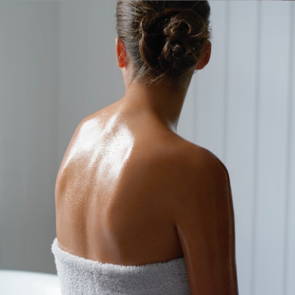 - Після ванни або душу нанесіть олію на чисту, суху або злегка вологу шкіру.